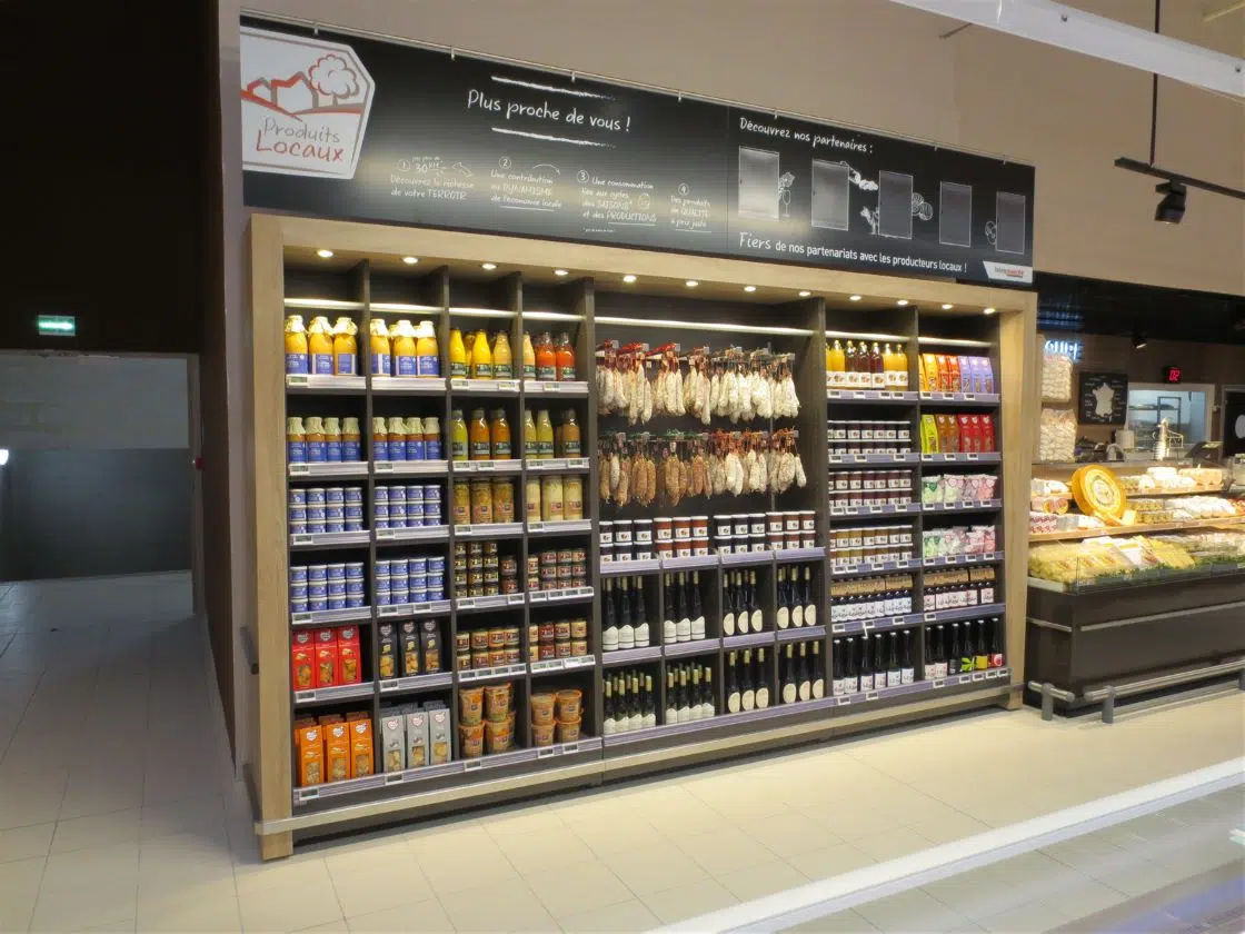 L’expertise de Someva se retrouve en grande distribution, à travers les espaces fruits et légumes, boulangerie, pâtisserie, saucissons, fleurs, cave à vin…