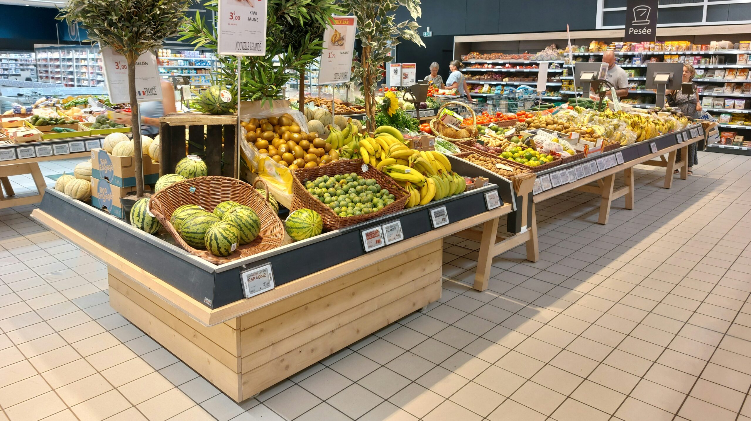 La rénovation du mobilier présentoir pour fruits et légumes est un investissement stratégique pour les grandes surfaces. Nous sommes ravis d’avoir accompagné une nouvelle fois notre fidèle client, Super U Paimboeuf, que nous avions initialement équipé en 2011. Treize ans plus tard, bien que le mobilier pour fruits et légumes soit encore en parfait état, l’enseigne a opté pour une modernisation visant à rafraîchir l’esthétique de son rayon, à le rendre plus attractif et à améliorer l’expérience client. Cette rénovation ciblée a permis de prolonger la durée de vie des structures existantes en remplaçant uniquement les piètements et les pare-chocs, offrant ainsi une solution durable et économique.
